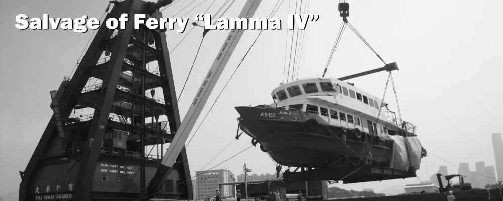 Arrange floating cranes, diving team, lifting equipment and custom fabricate support cradle to relocate stranded the "Lamma IV" from Nga Kau Wan to Marine Department Dockyard for accident investigation.
